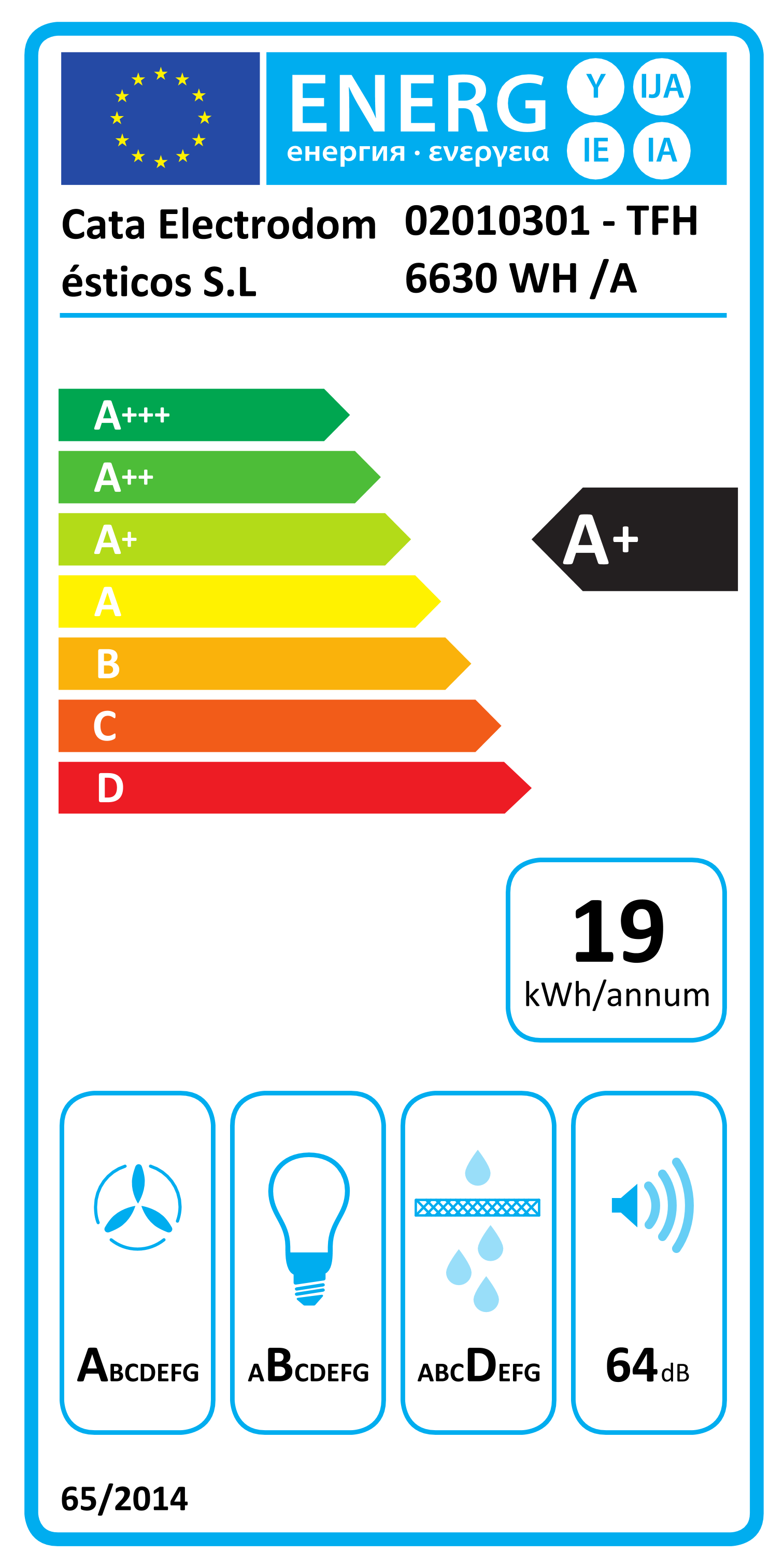 Campana Cata TFH6630WH 02010301575 m3/h, 6 Velocidades, Clase A+, Blanco