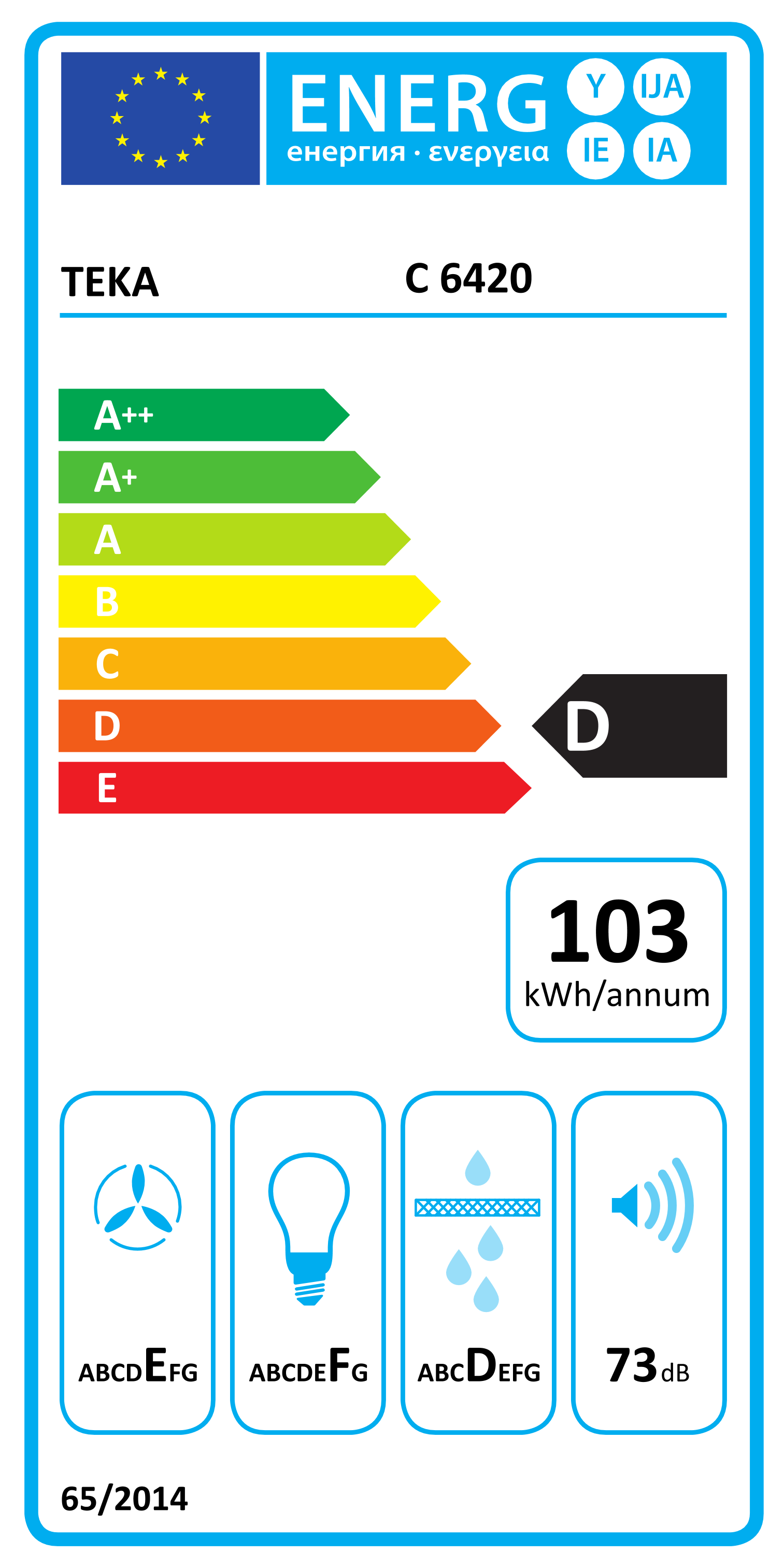Campana extractora Teka C6420W60cm, 3 Velocidades, 375m3/h, 73dB, Iluminación halógena, Blanca