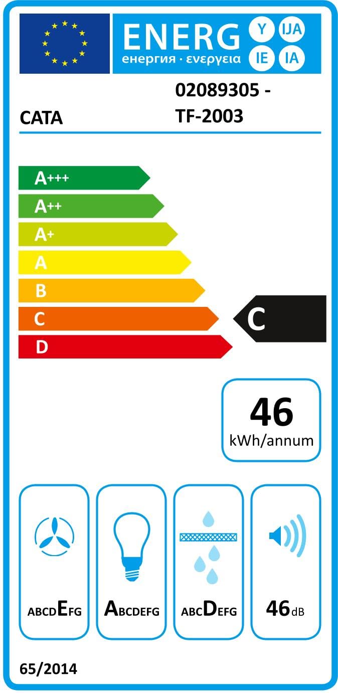 Campana Extraíble Cata TF2003 Duralum 70Clase C, 70cm, 390m3/h, 2 Velocidades, Interior Blindado