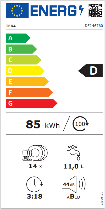 Lavavajillas Integrable Teka DFI467603ª Bandeja, 14 servicios, Clase D, 44 dB, Negro