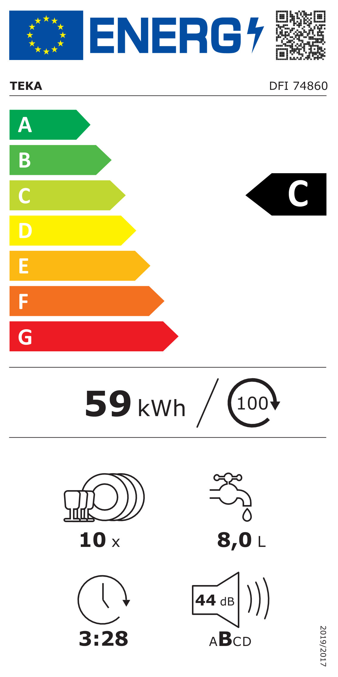 Lavavajillas Integrable Teka DFI74860 11431001110 Servicios, 3ª Bandeja, 8 Programas, Negro