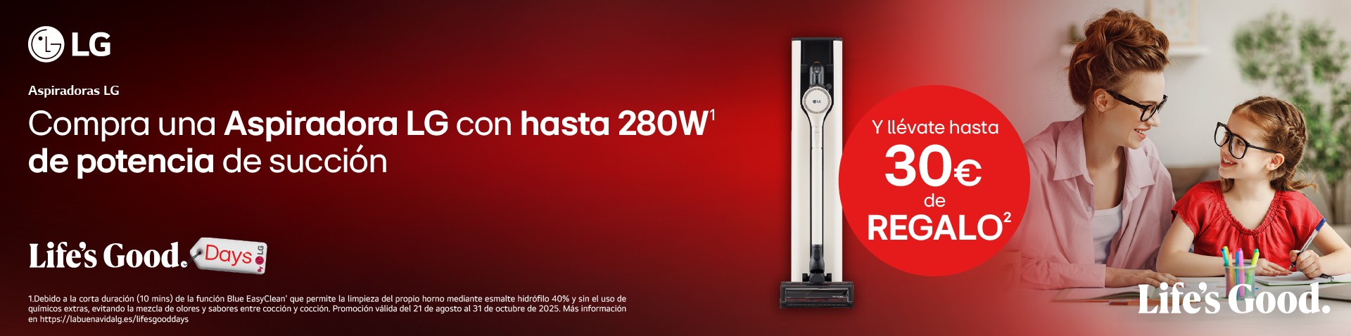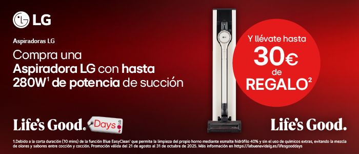 Del 21 agosto al 31 de octubre compra un aspirador LG y llévate hasta 30€ de reembolso. Canjea tu regalo en el siguiente enlace.