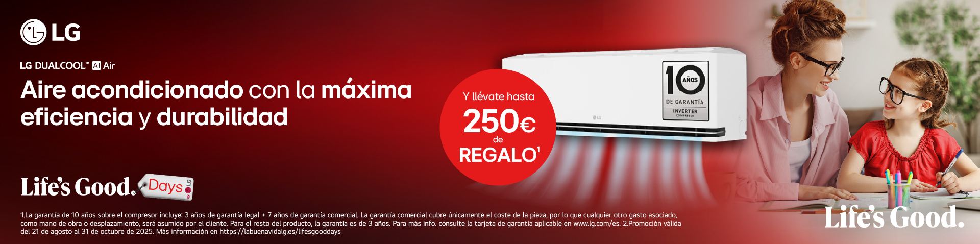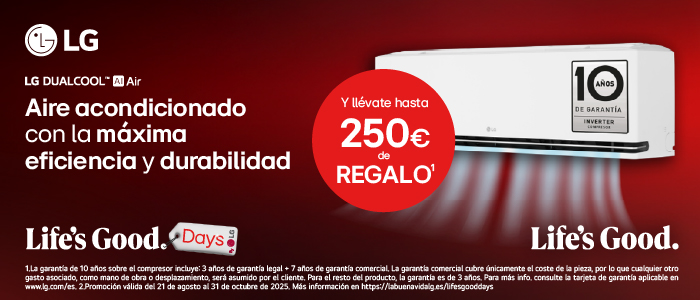 Del 21 agosto al 31 de octubre compra un aire acondicionado LG y llévate hasta 250€ de reembolso. Canjea tu regalo en el siguiente enlace.