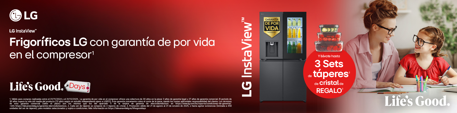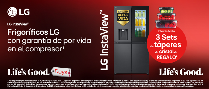 Del 21 agosto al 31 de octubre compra un Frigo LG y llévate hasta 3 Sets de táperes de cristal de regalo. Canjea tu regalo en el siguiente enlace.