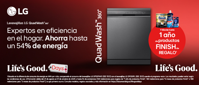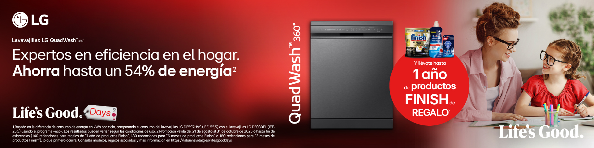 Del 21 agosto al 31 de octubre compra un lavavajillas LG y llévate hasta 1 año de producto Finish de REGALO. Canjea tu regalo en el siguiente enlace.
