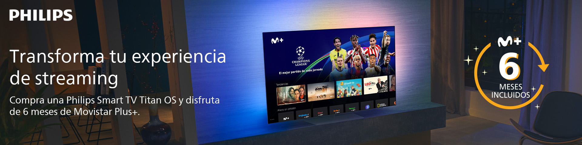 Compra una Philips Smart TV Titan OS y disfruta de 6 meses de Movistar+. Valorado en 59,94€ en la fecha de lanzamiento de la promoción.