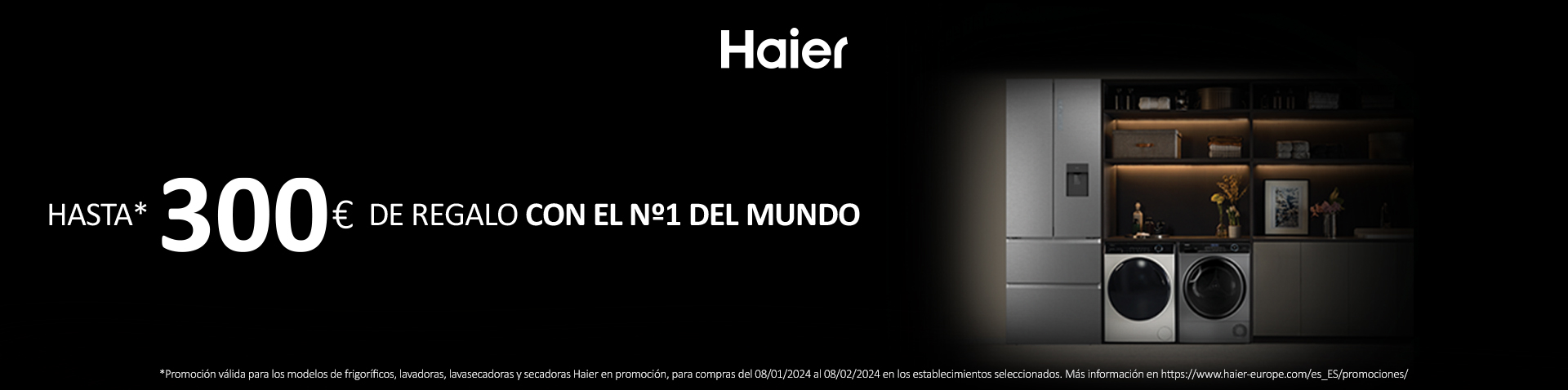 Promoción válida para los modelos de frigoríficos, lavadoras, lavasecadoras y secadoras Haier en promoción, para compras del 08/01/24 al 08/02/24.